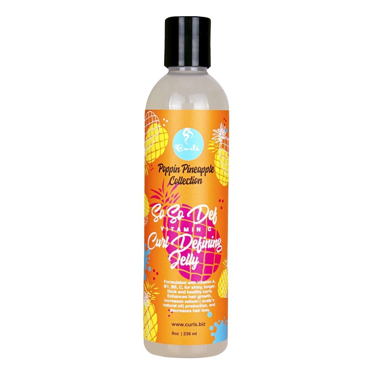 Curls Poppin Pineapple So So Def Vitamin C Curl Defining Jelly richly infused with Vitamin C A B6 and B1 is a must-have for keeping your curls intact and shining all day. Take generous amounts of defining jelly and brush through your hair strands for deep nourishment and lasting shine. With a subtle fragrance of fresh pineapples this product will keep you and your curls happy all day every day.